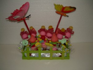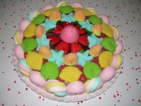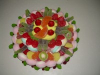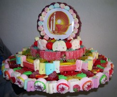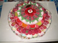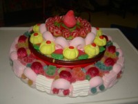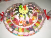 Realizamos tartas de diferentes tamaños. Pueden ser de un piso de dos o de tres. También tenemos modelos especiales en las que podemos poner una fotografía de Comunión. Ejemplos de tartas de tres pisos:   Ejemplos de dos pisos:   Tartas de un piso:  Tartas especiales: Muñeca con falda de gominolas  Tarta de comunión de 4 pisos, en la otra cara del círculo central colocamos la foto del niñ@  Jardinera